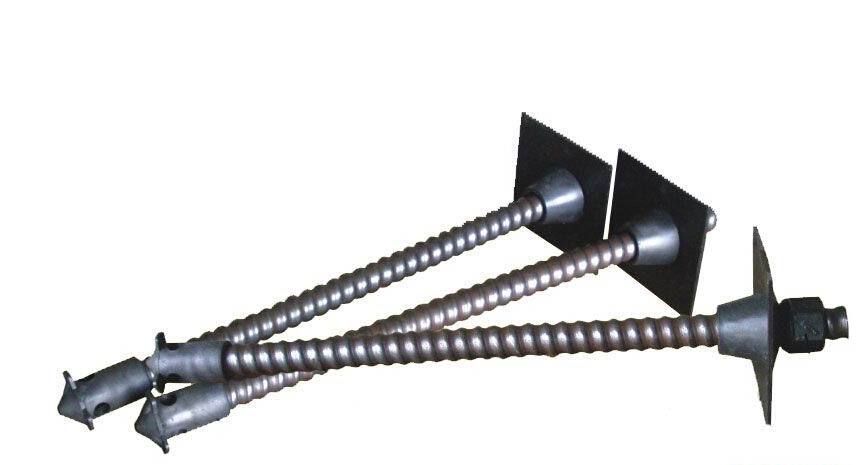 螺紋鋼錨桿的特點是桿體全長均有軋制的連續螺紋,全長相等的強度。在緊固端設有預應力墊片和球頭形螺母。